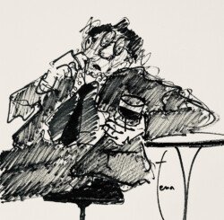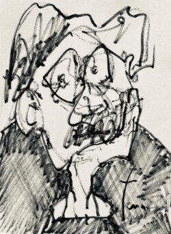 Comme tous ces personnages qui s’agitent, je pars dans tous les sens au rythme de mes émotions fluctuantes. Je les pose sur le papier, je me raconte, je libère mes faiblesses et ça devient ma force. Ces dessins correspondent à des TRONCHES de vie et j’adore essayer (« sur le papier ») de rendre HEUREUX ces BONS hommes qui ne le sont pas toujours d’ailleurs.